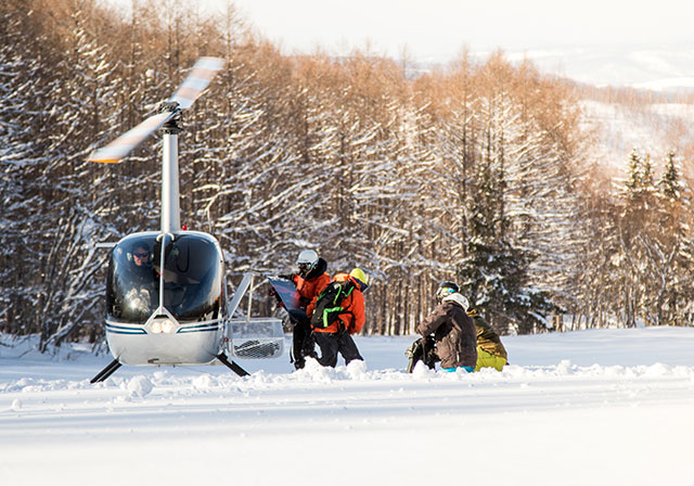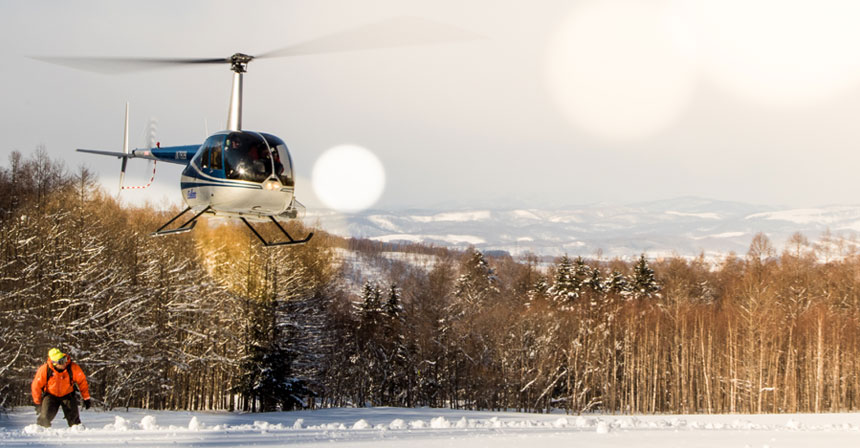 Adrenaline rush. Heart pumping. Naoki the pilot’s voice crackles in my ears, over the headphones: Watch out for the flurries when you get out, also when I take off! Great ride guys — Shiribetsu-Dake looks fabulous today! The attendant on the landing snowpad gives Naoki the thumbs up and away the bird goes!